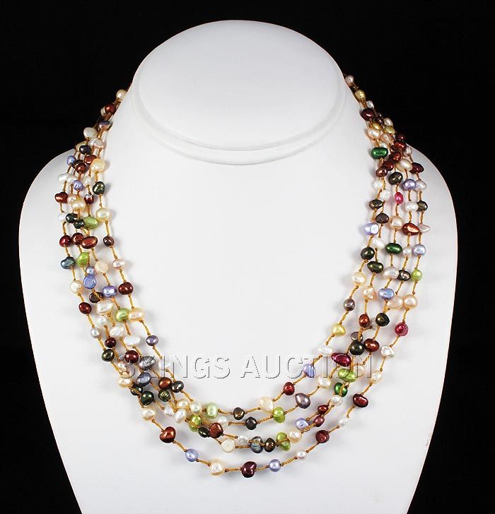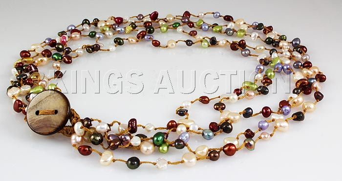 202.70CTW Multi Color Thread Freshwater Pearl Necklace **|**|** 19 inches Multi-color 5 Strand Thread Freshwater Pearl Necklace w/ Botton Lock ; MSRP: $300