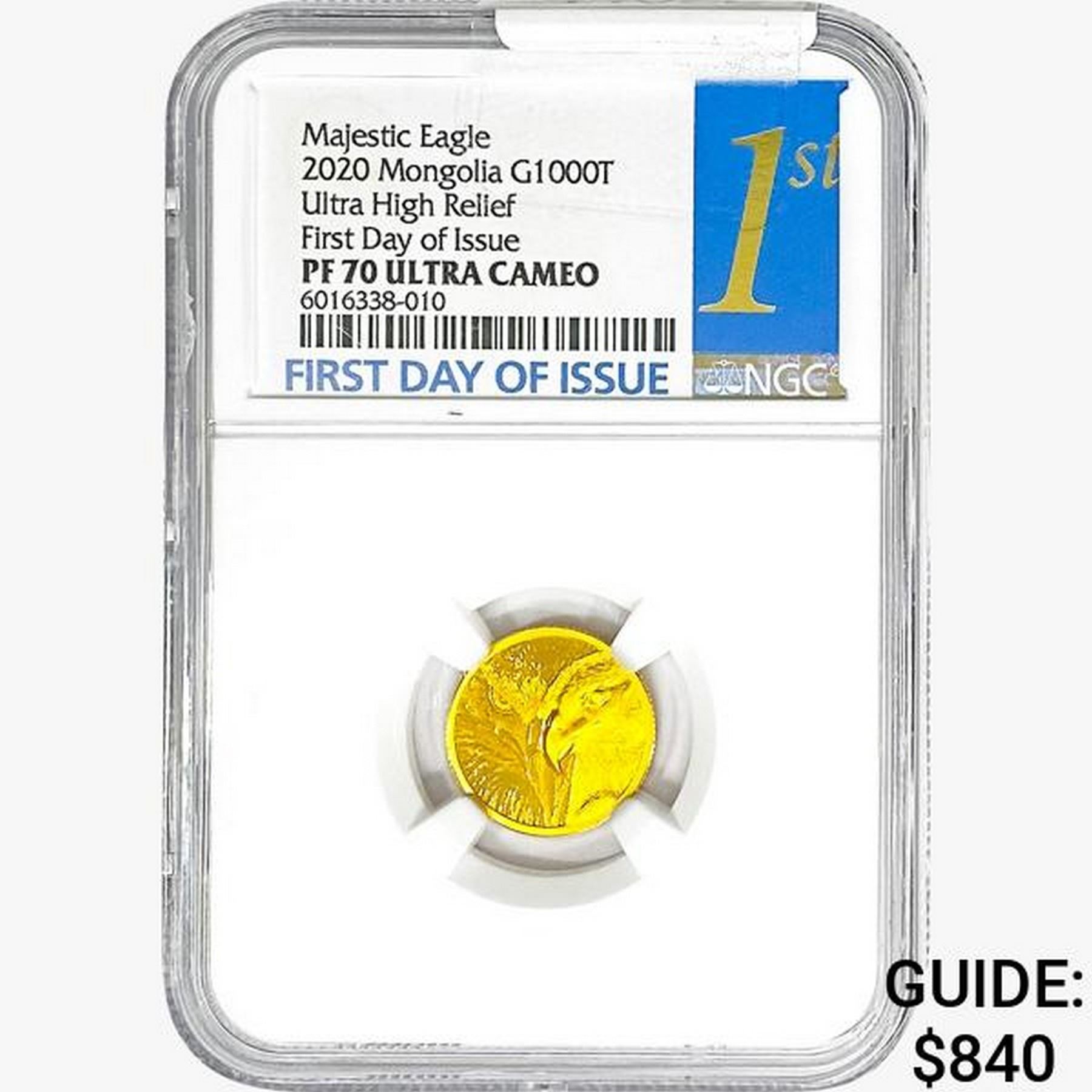 2020 1/10oz Gold Mongolia 1000T NGC PF70 HR