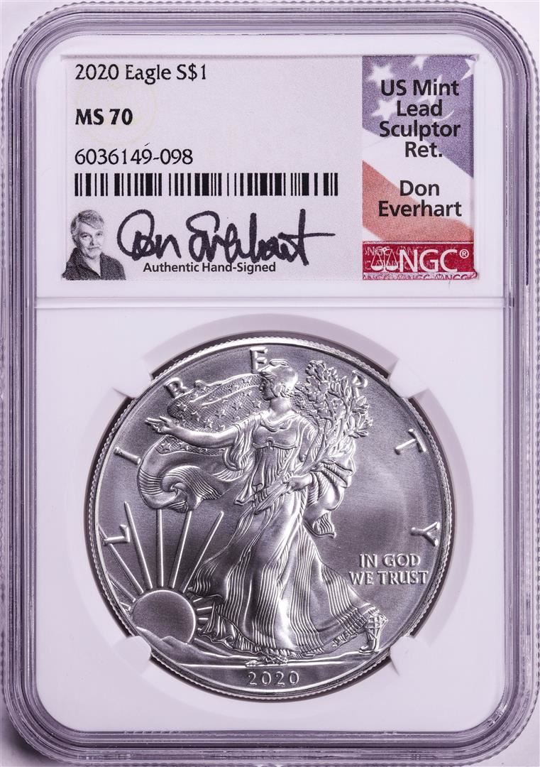 2020 $1 American Silver Eagle Coin NGC MS70 Don Everhart Signature