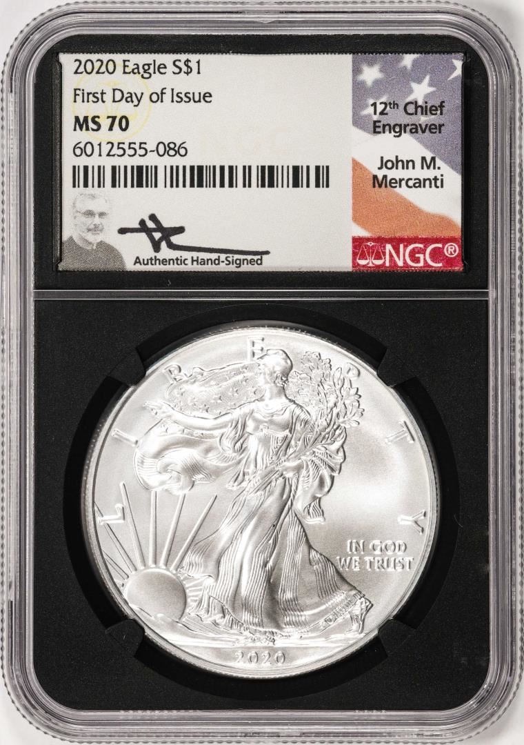 2020 $1 American Silver Eagle Coin NGC MS70 First Day of Issue Mercanti Signature