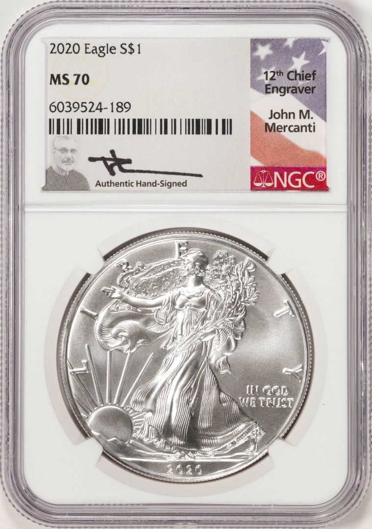 2020 $1 American Silver Eagle Coin NGC MS70 Mercanti Signature