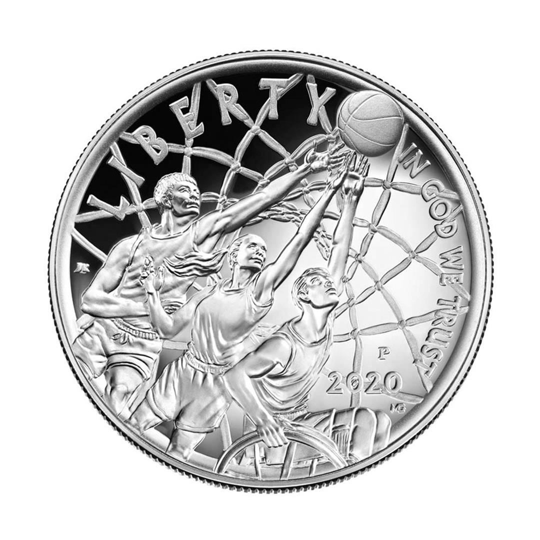One 2020 $1 Proof Basketball HOF Colorized Commemorative Silver Dollar Coin w/ COA & Box.