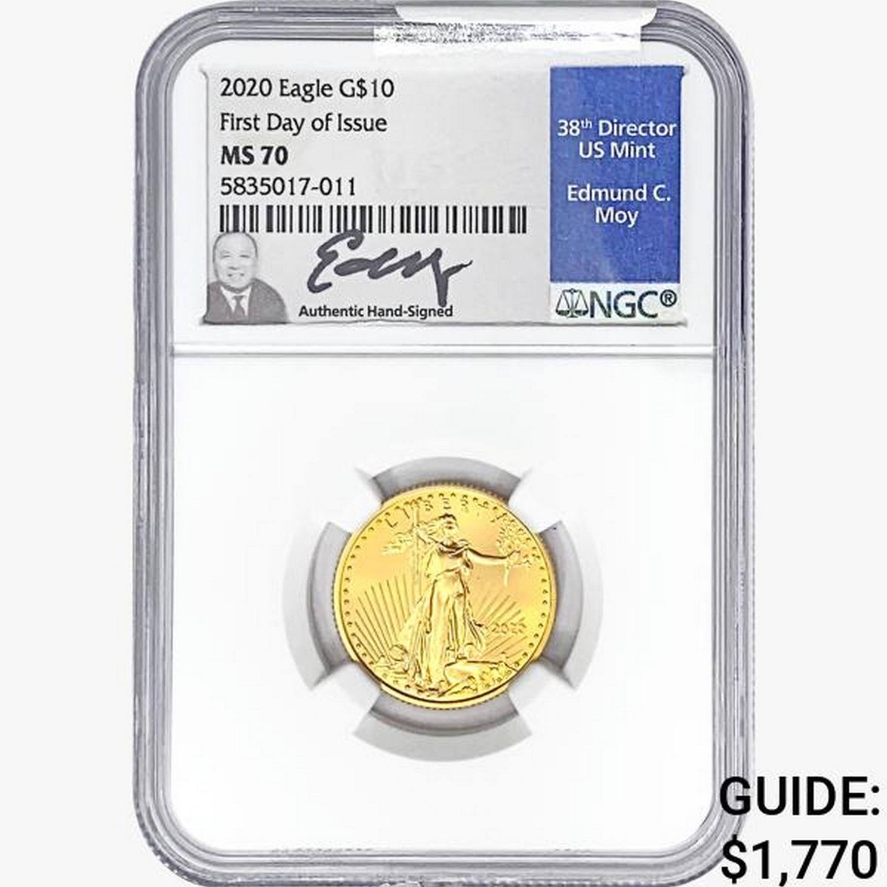 2020 $10 1/4oz. Gold Eagle NGC MS70 FDI Signed Moy