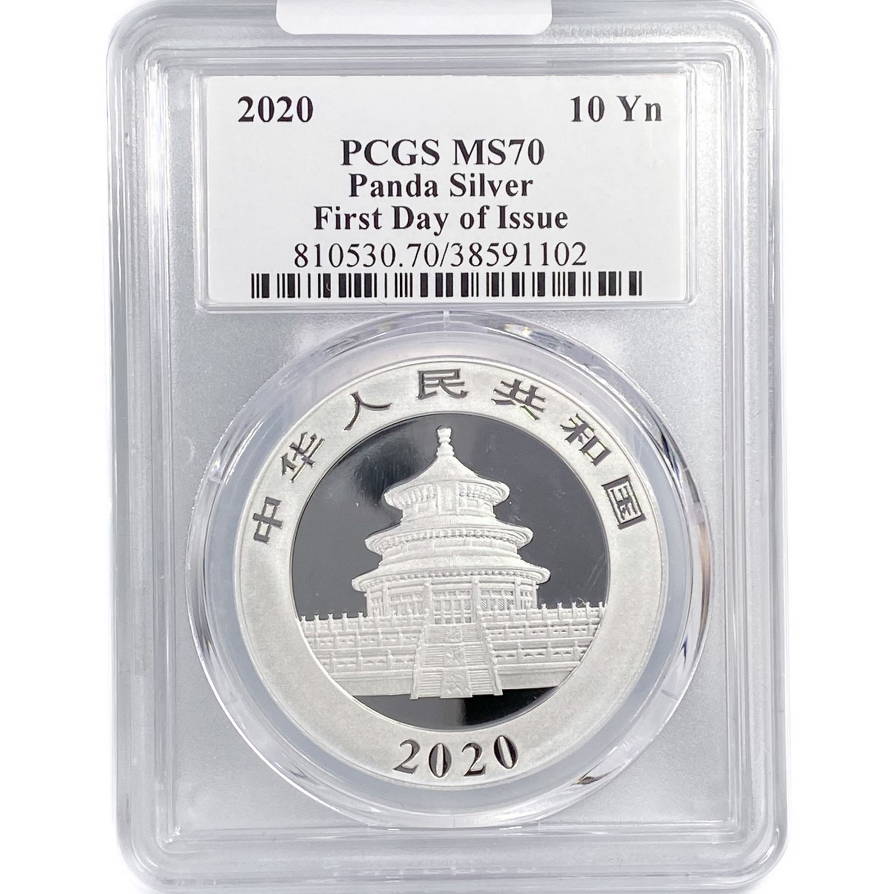 2020 10 Yn China Panda Silver PCGS MS70 1st Day