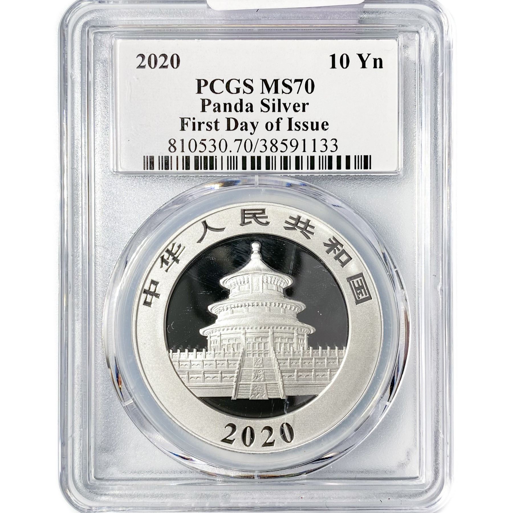 2020 10 Yn China Panda Silver PCGS MS70 1st Day