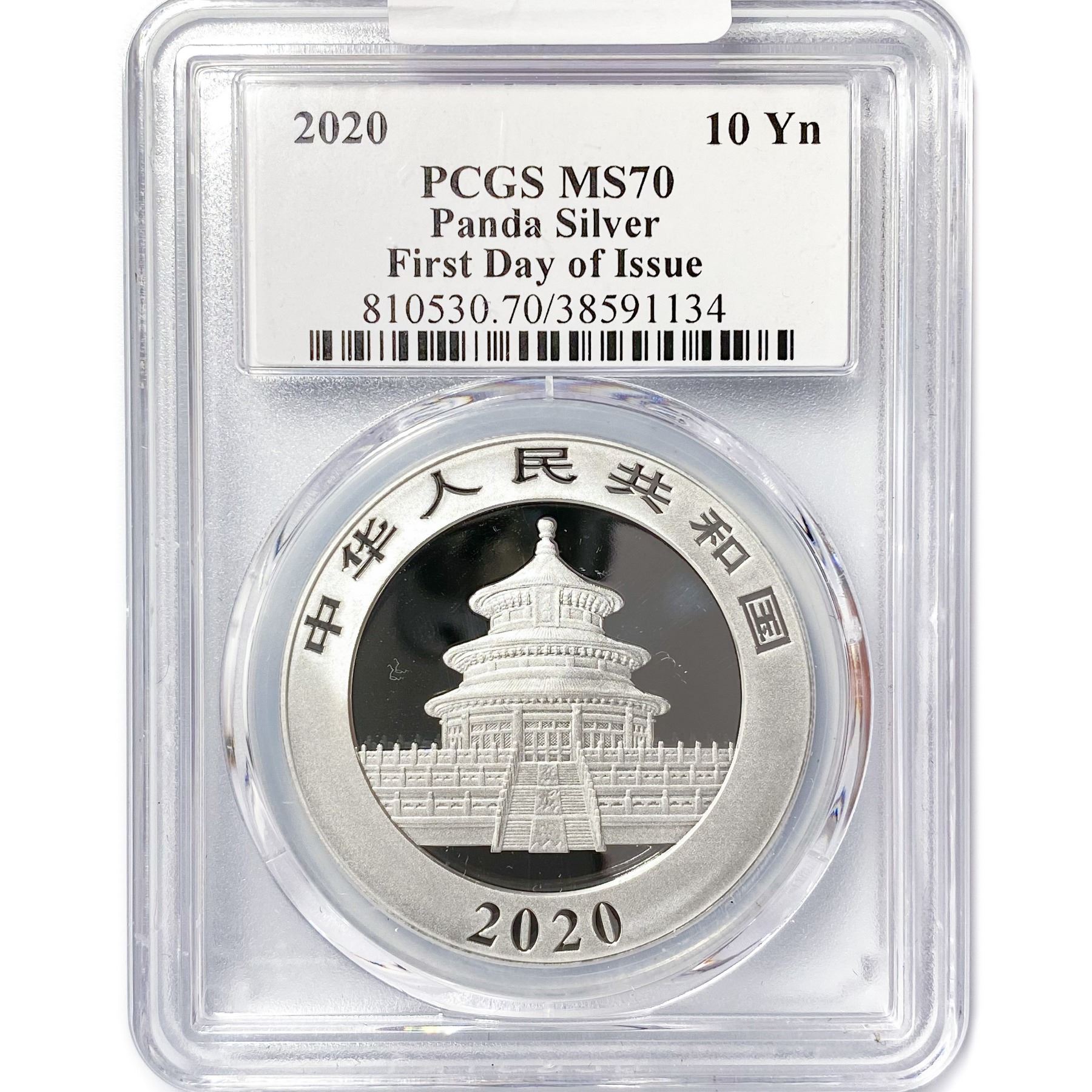 2020 10 Yn China Panda Silver PCGS MS70 1st Day
