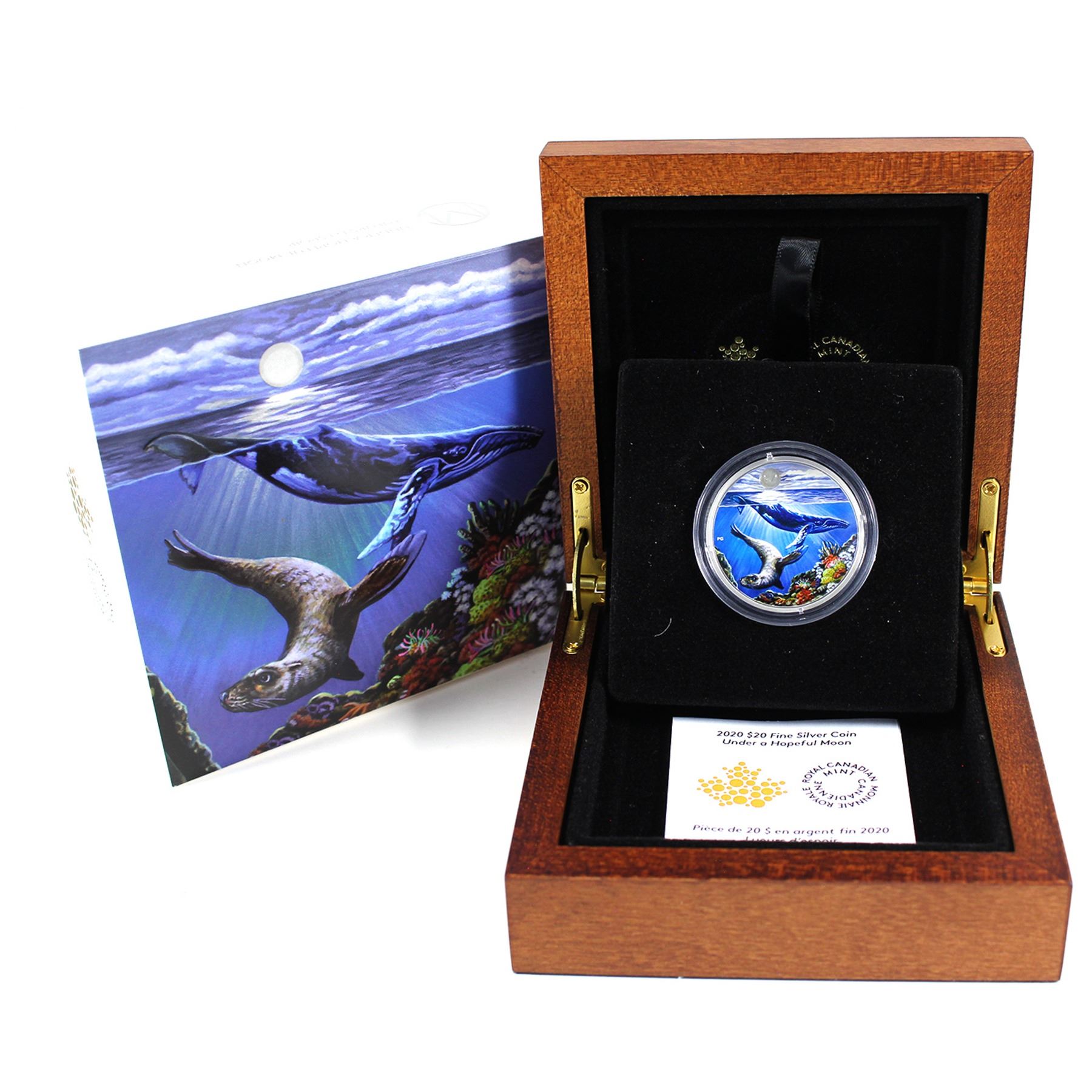 2020 $20 Under a Hopeful Moon, Fine Silver With Scapolite Stone Moon. Low Certificate Number! 120/2500