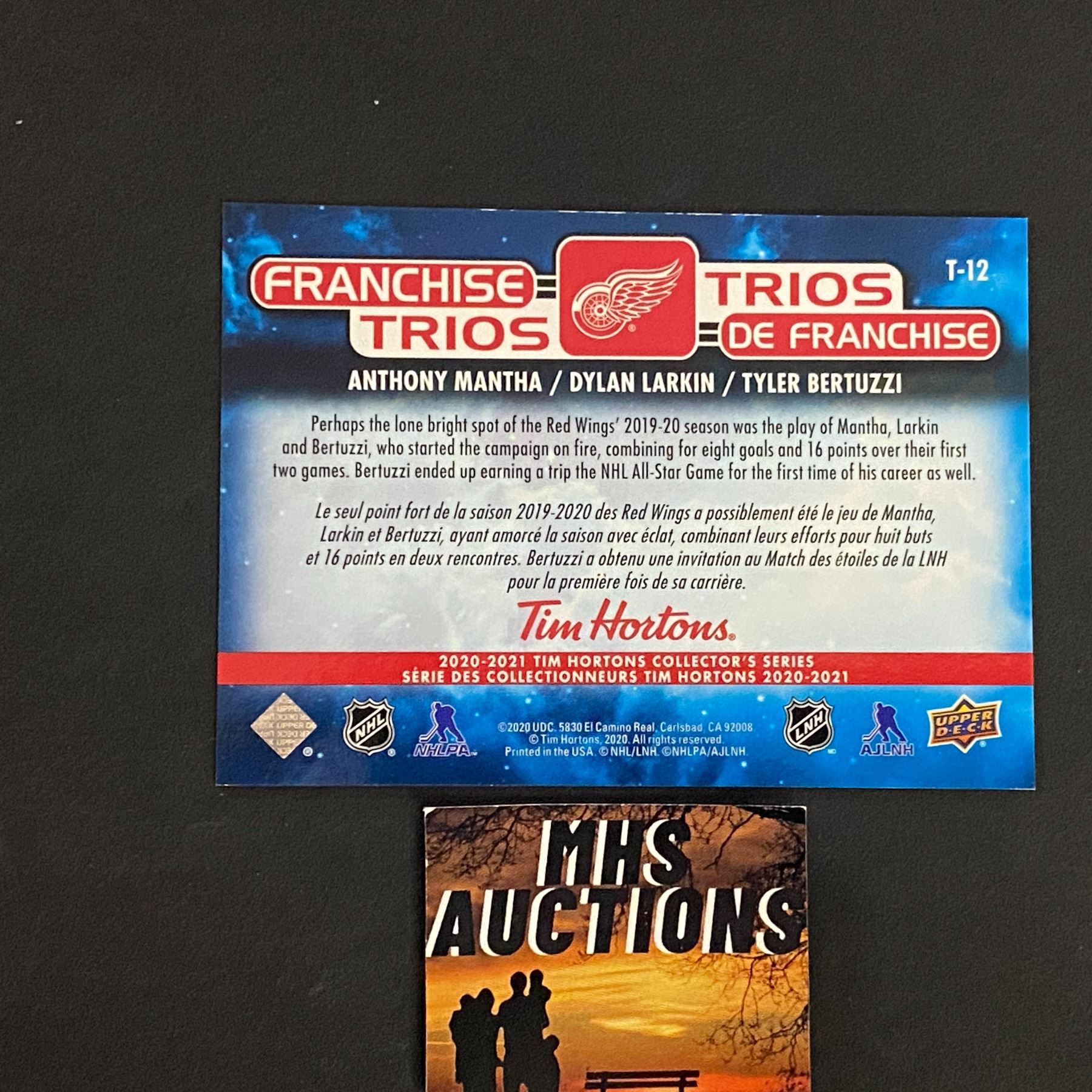 2020-21 TIM HORTONS COLLECTORS SERIES FRANCHISE TRIOS MANTHA, LARKIN, BERTUZZI