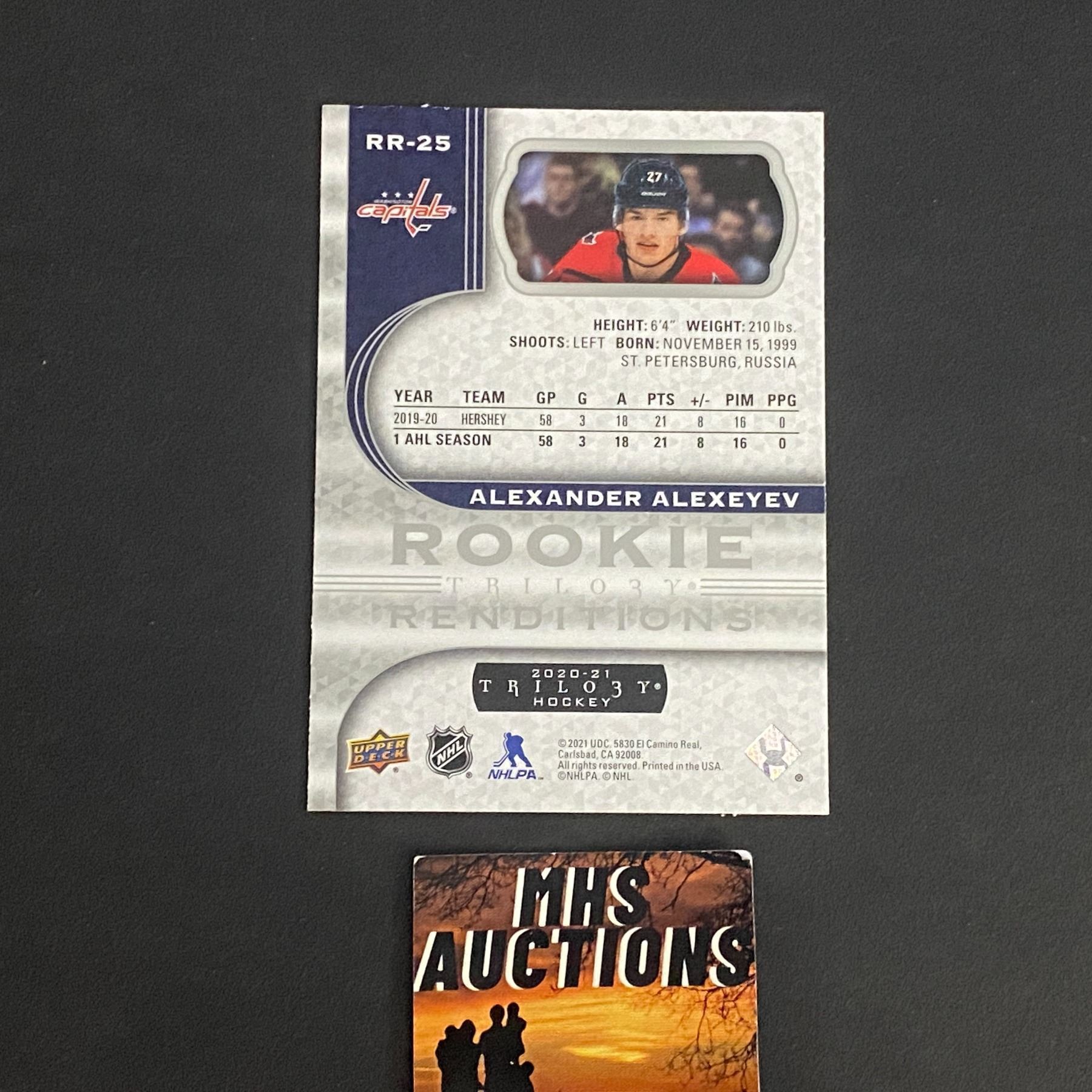2020-21 TRILOGY ALEXANDER ALEXEYEV HOCKEY ROOKIE CARD