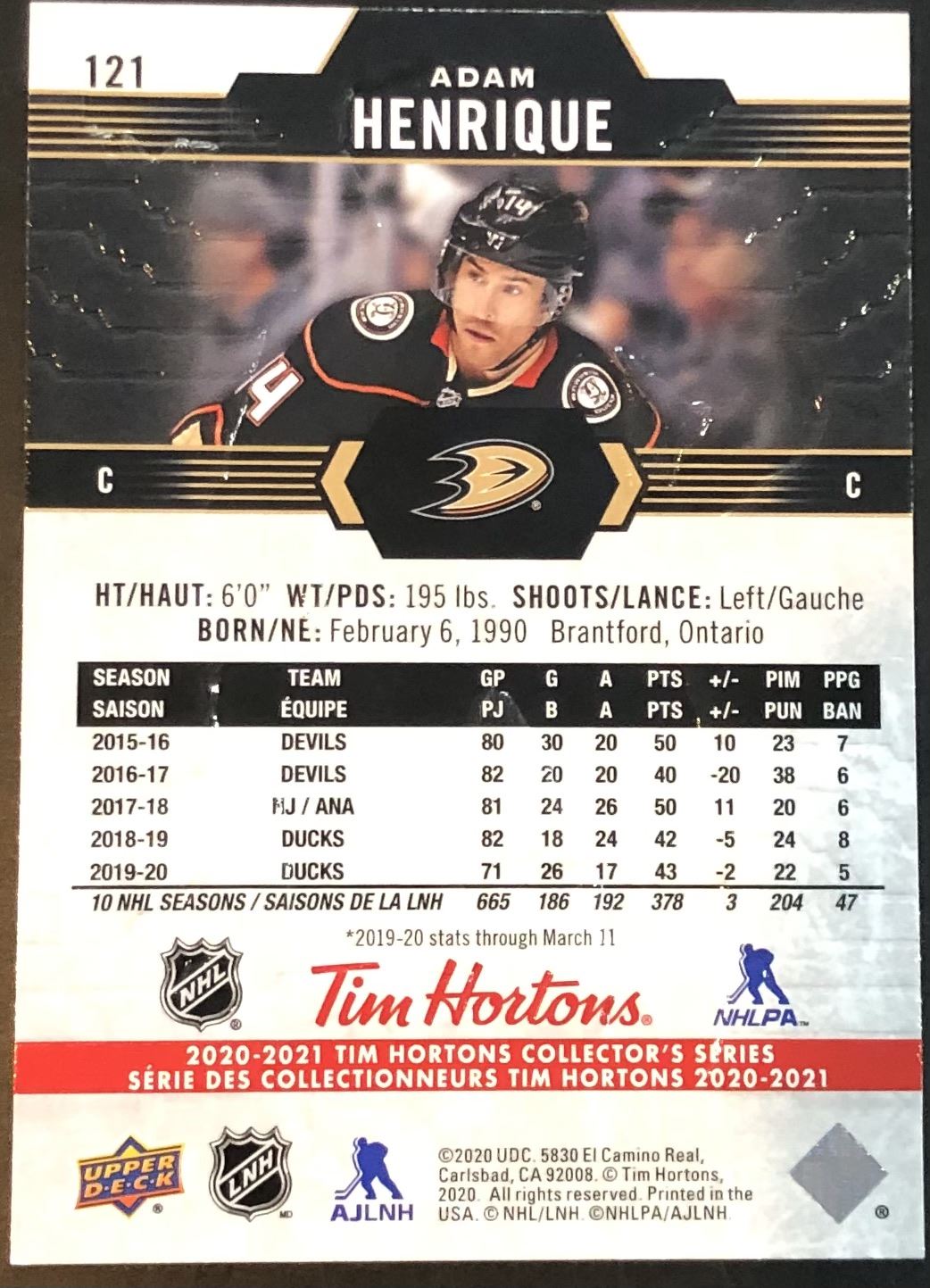 Tim Hortons card #121 UD, regional, NHL, hockey
