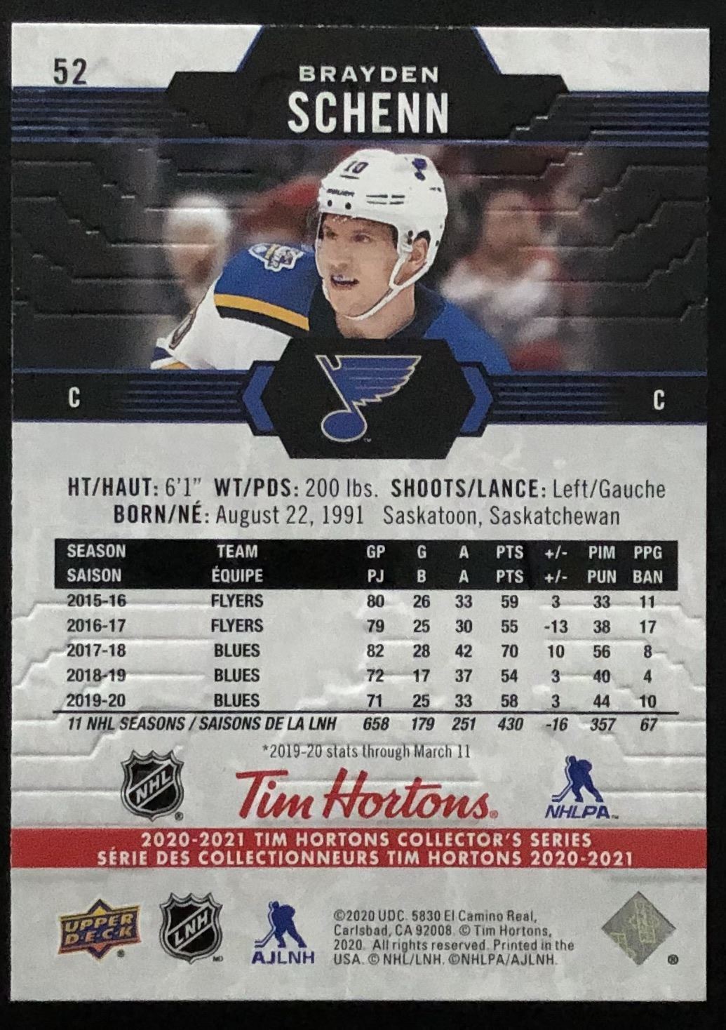 Tim Hortons card #52 hockey, NHL, UD, regional