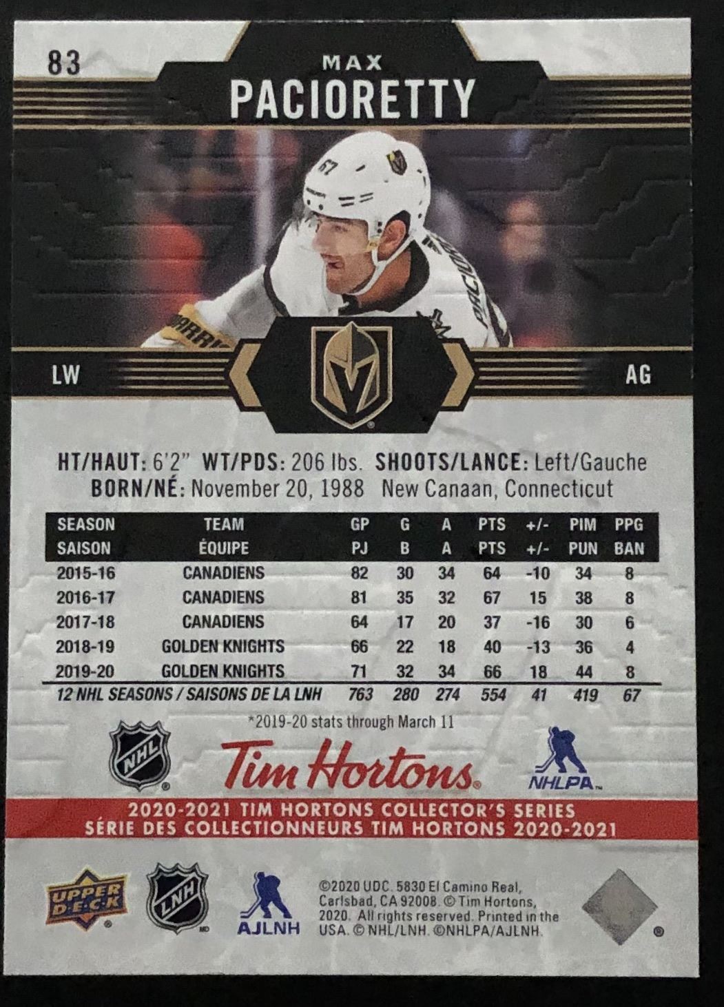 Tim Hortons card #83 hockey, NHL, UD, regional