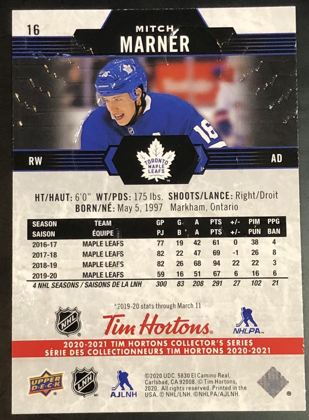 Tim Hortons card #16 NHL, hockey, UD, regional