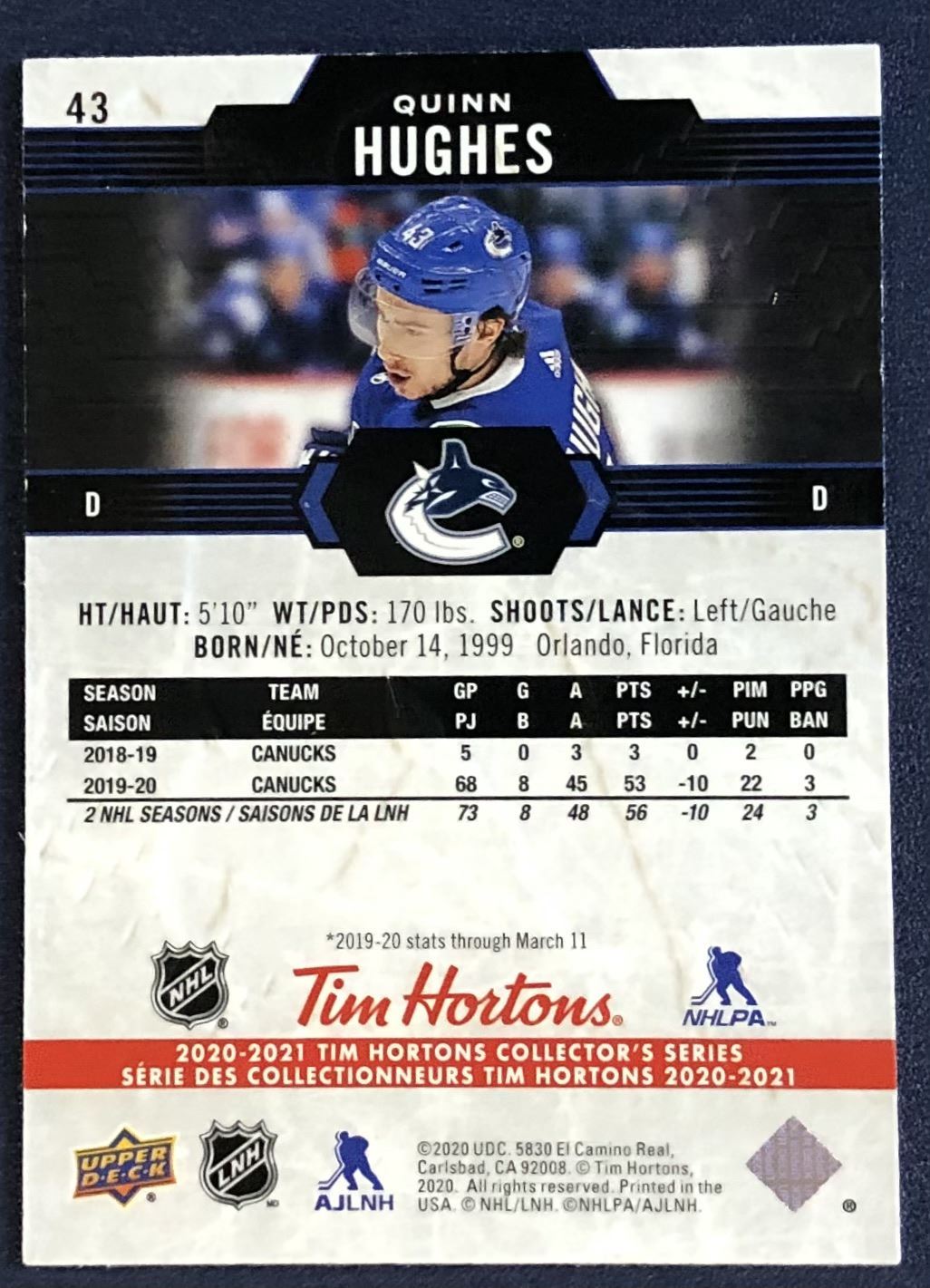 TIM HORTONS card #43 NHL, hockey, rookie, regional