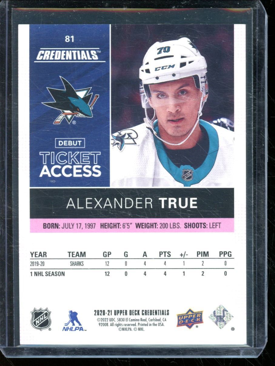 2020-21 Upper Deck Credentials Pink #81 Alexander True Rookie 3/49