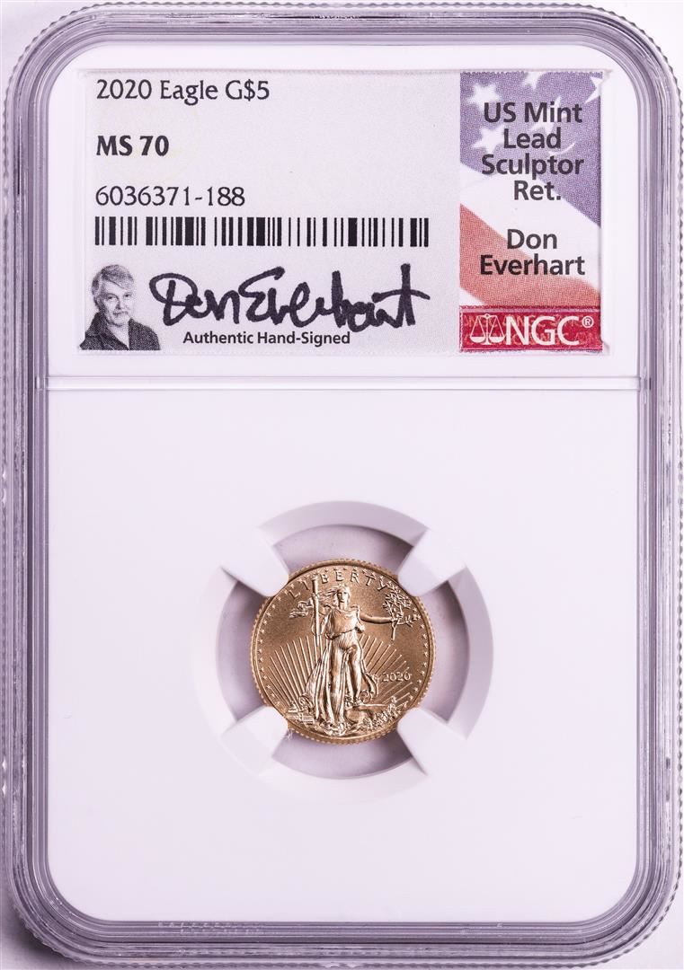 2020 $5 American Gold Eagle Coin NGC MS70 Early Releases Don Everhart Signature
