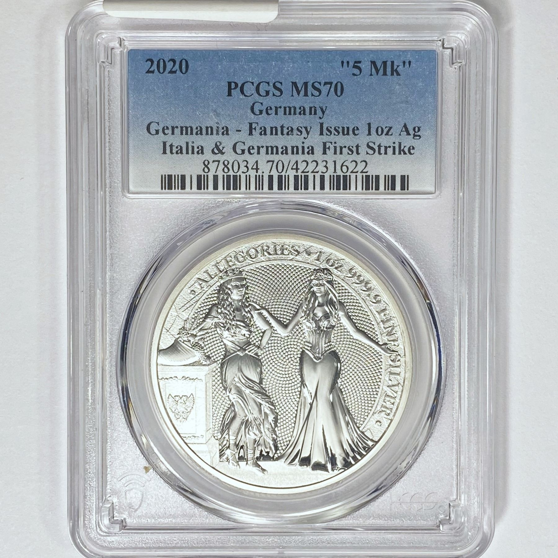 2020 5 Mk 1oz Silver Germania PCGS MS70 1st Strike