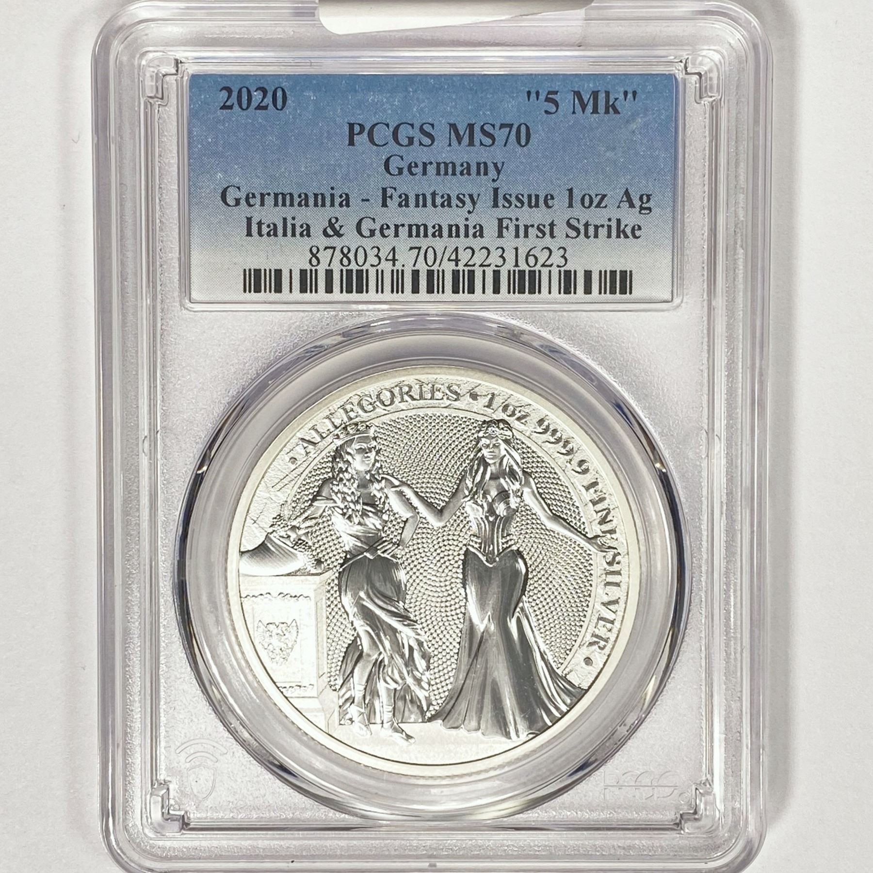 2020 5 Mk 1oz Silver Germania PCGS MS70 1st