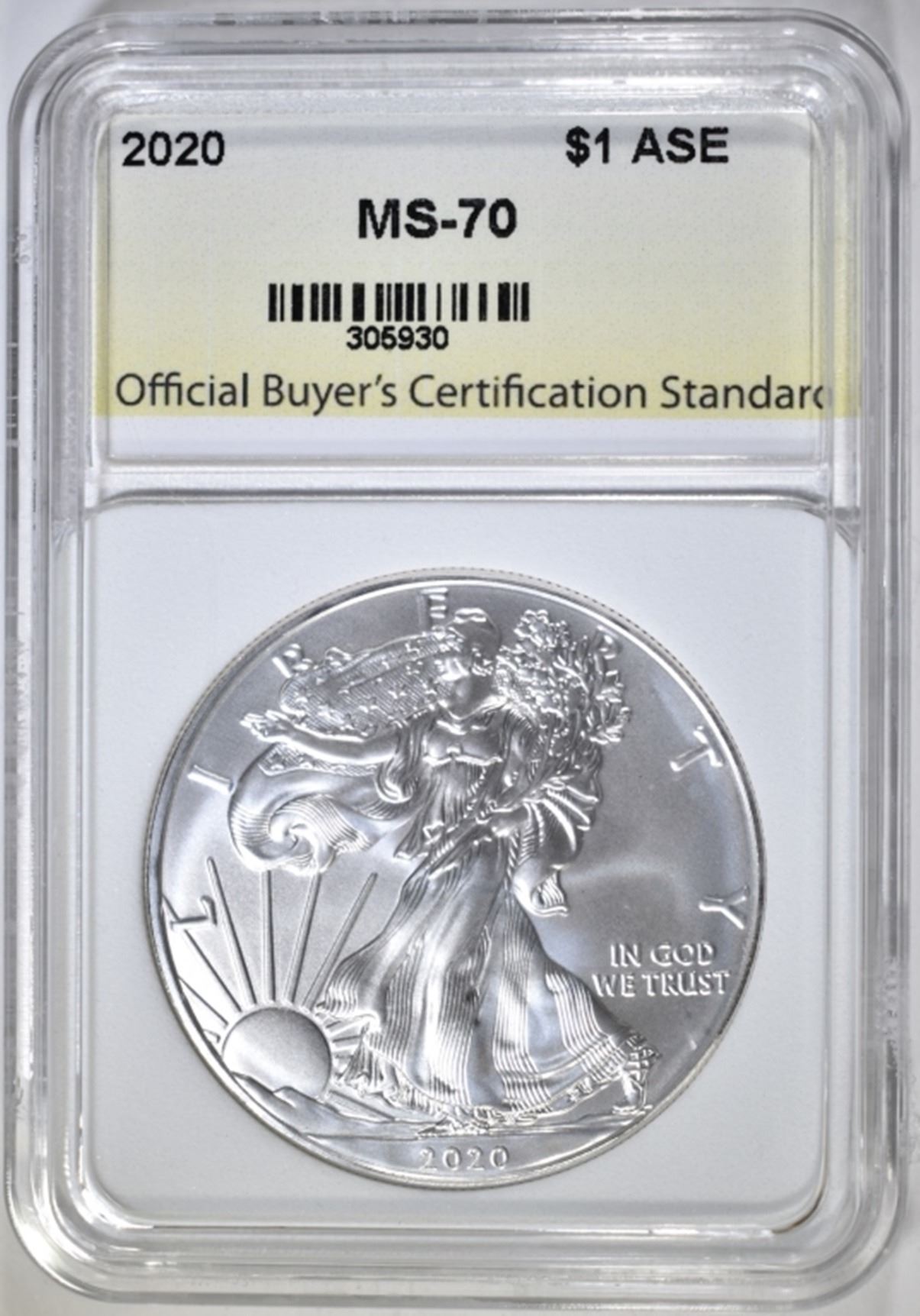 2020 AMERICAN SILVER EAGLE, OBCS PERFECT GEM BU