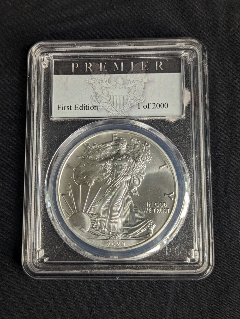 A 2020 American Silver Eagle PCGS MS70 First Edition 1/2000. One of the first 2000 Eagle Graded from PCGS. Very cool