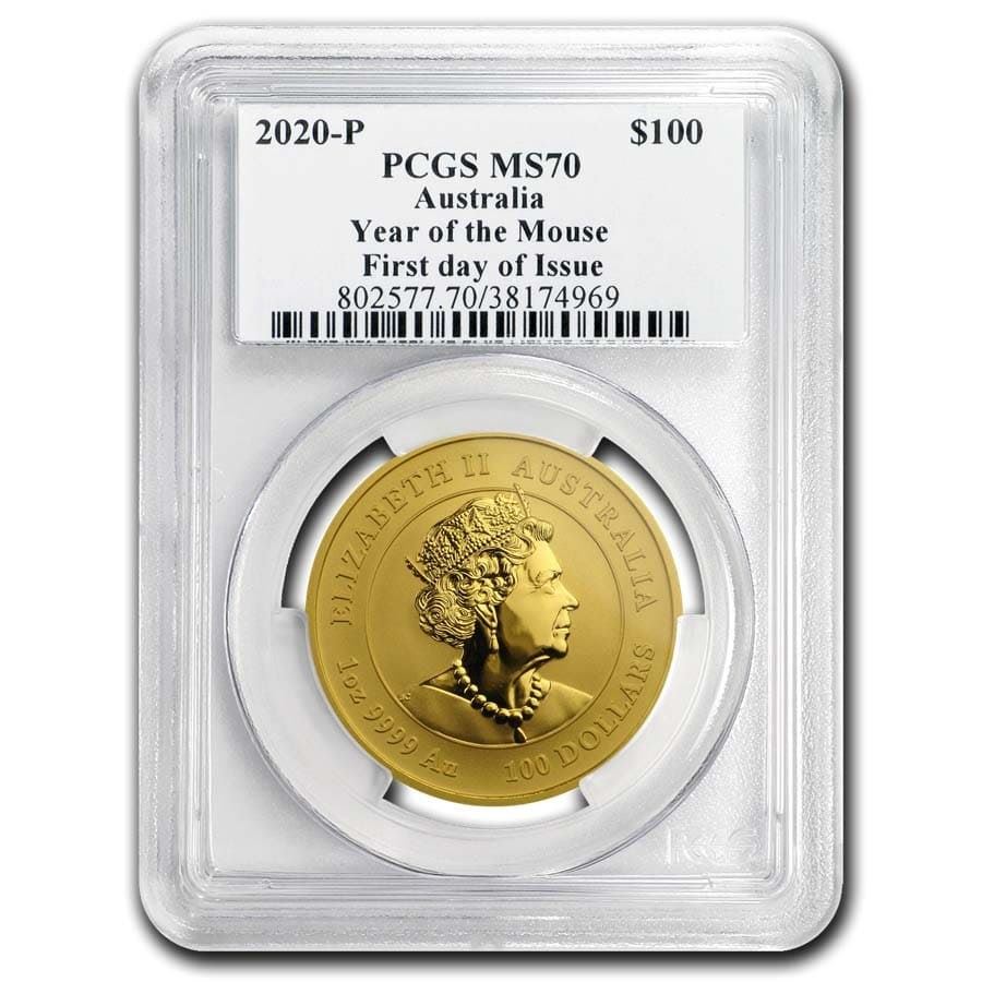 2020 Australia 1 oz Gold Lunar Mouse MS-70 PCGS (FD, Red Label)