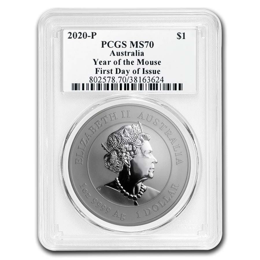 2020 Australia 1 oz Silver Lunar Mouse MS-70 PCGS (FD, Red Label)