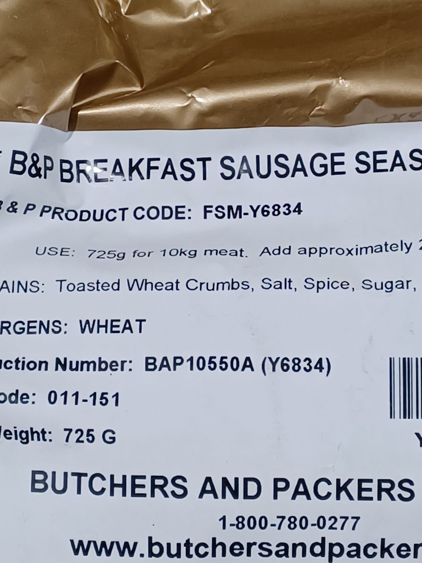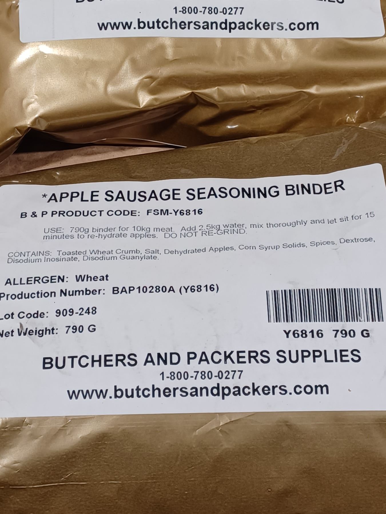 2020 B & P BREAKFAST AND APPLE SAUSAGE SEASONING AND BINDER - EACH MAKES 10KG
