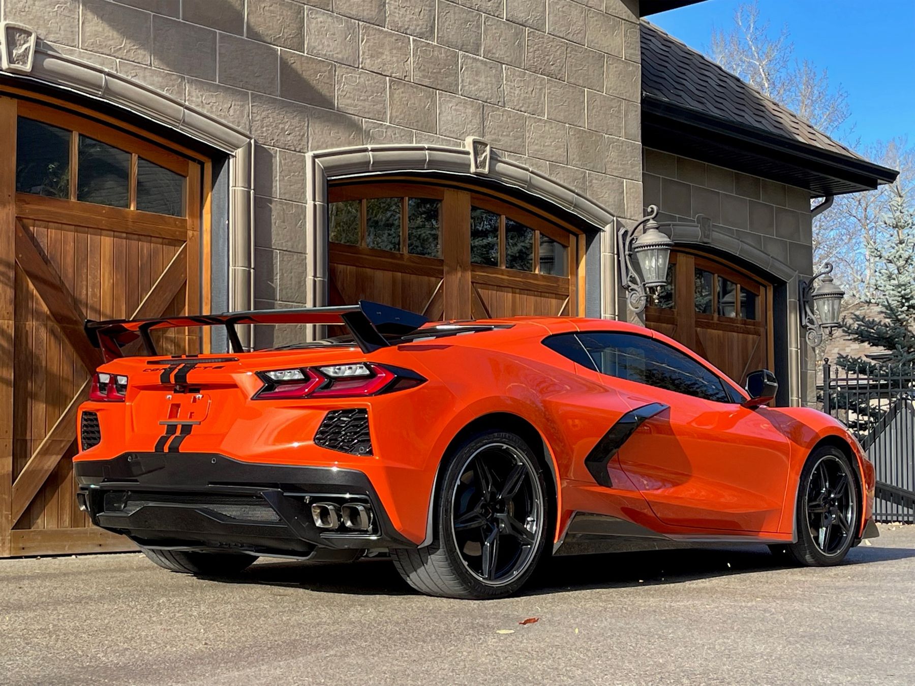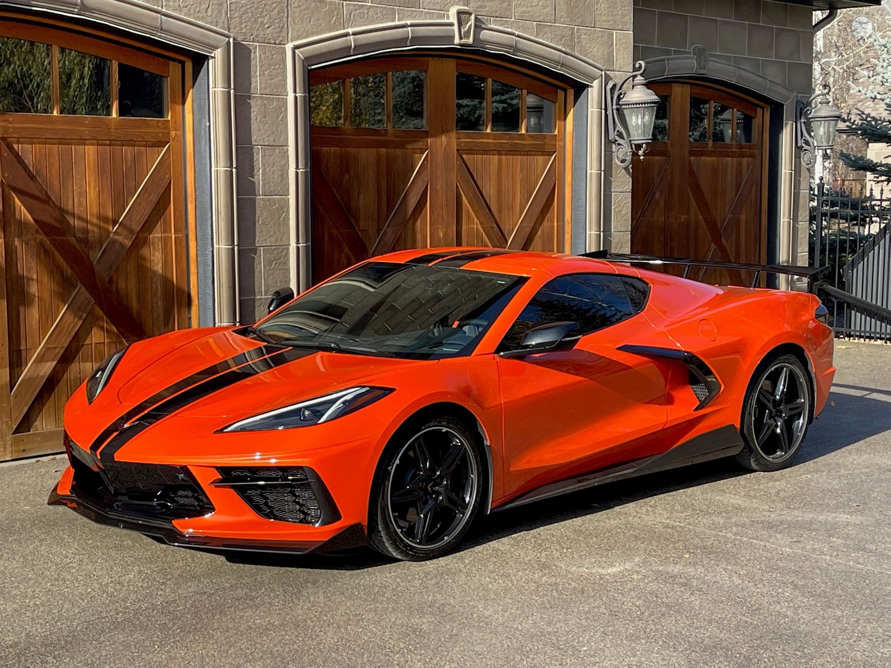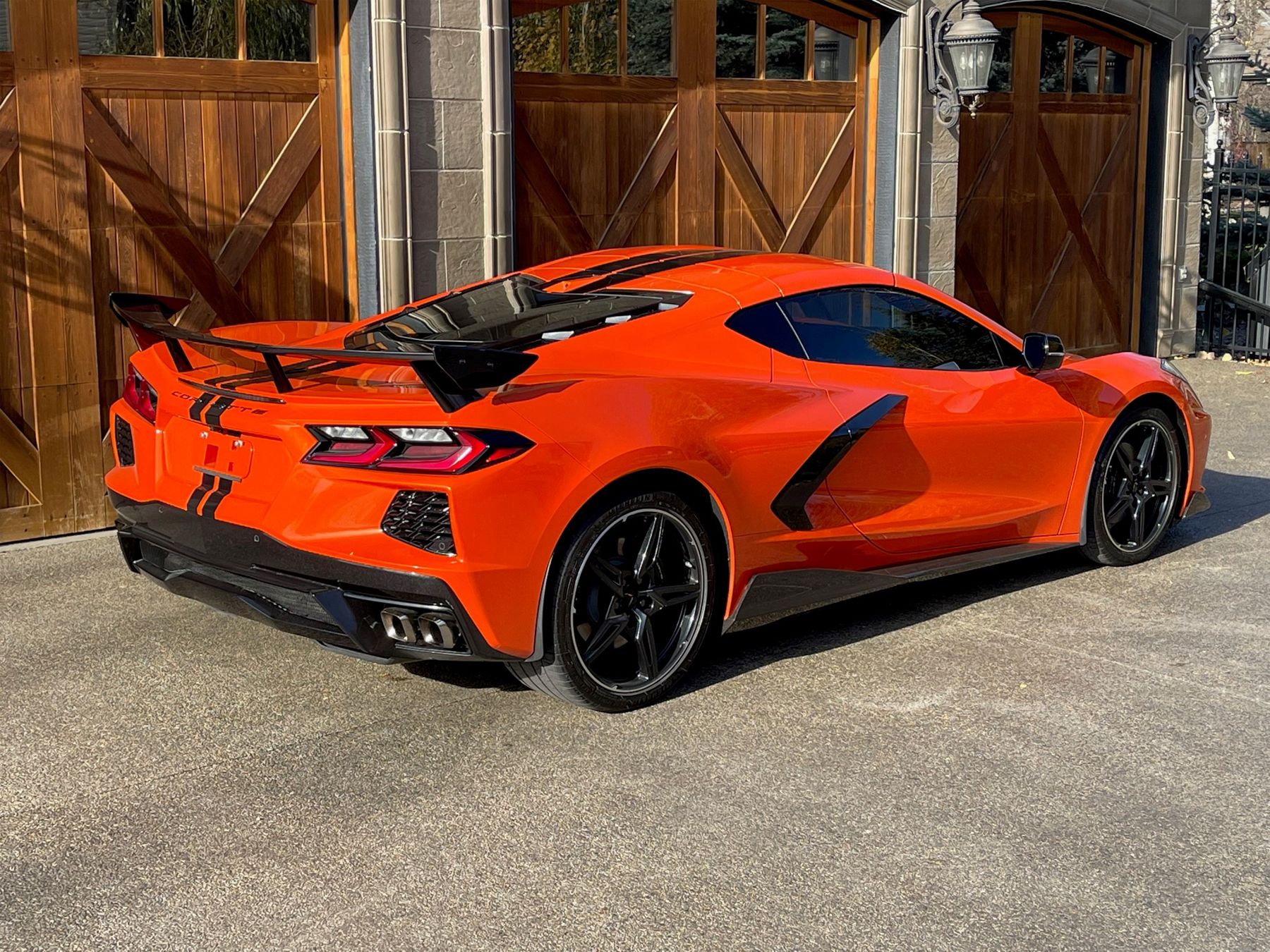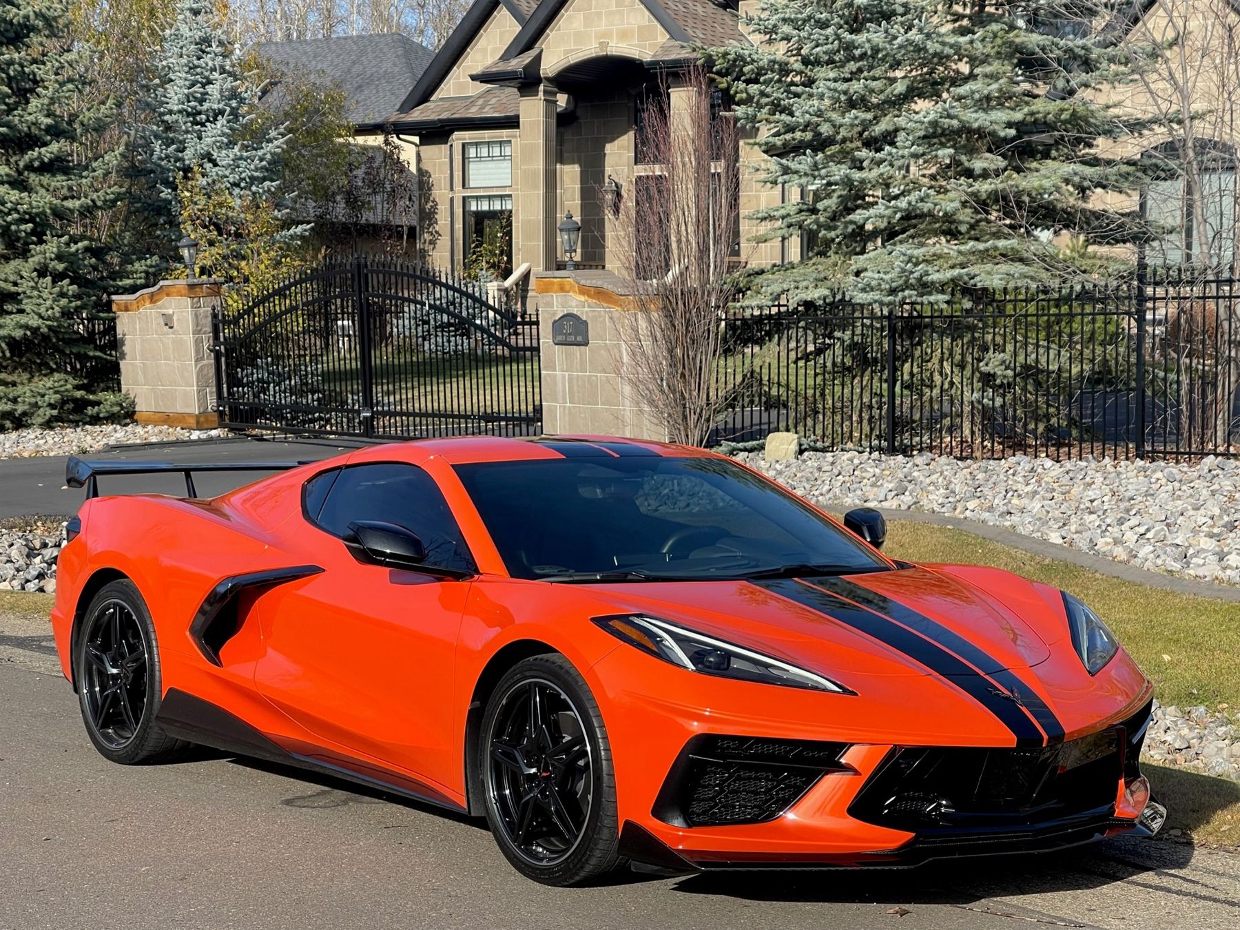 2020 Chevrolet Corvette Stingray this car was ordered new in Alberta and has the 2LT package as well as a number of options including the big wing package. The carbon fibre package. Black stripe package black wheel edition beautiful looking Corvette. Always kept in climate controlled facility. Full 3M protective Sebring Orange Exterior Black Leather Interior With Special Order Sebring Orange Seat Belts For A Beautiful Contrast. Loaded with every power option Clean Carfax