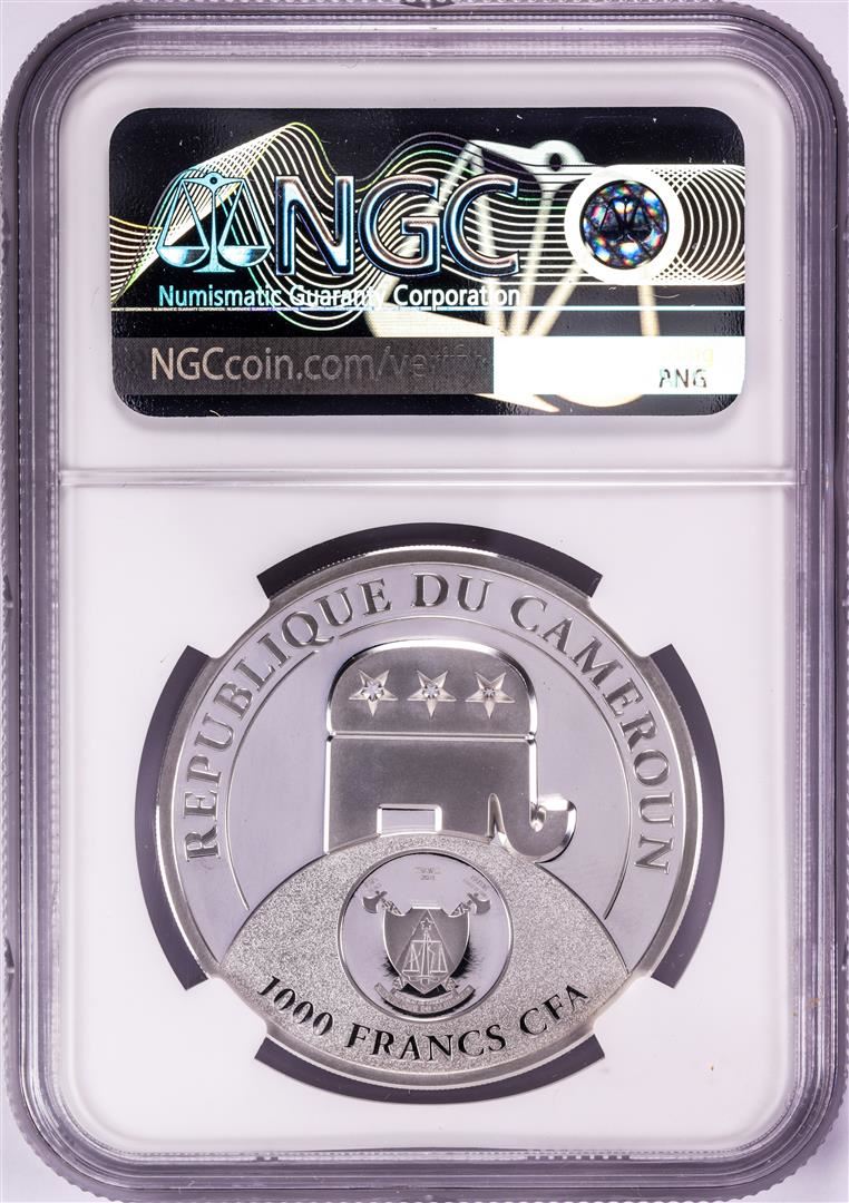 One 2020 Cameroon 1000 Francs High Relief Donald Trump Silver Coin NGC PF70 Ultra Cameo. NGC Certified.