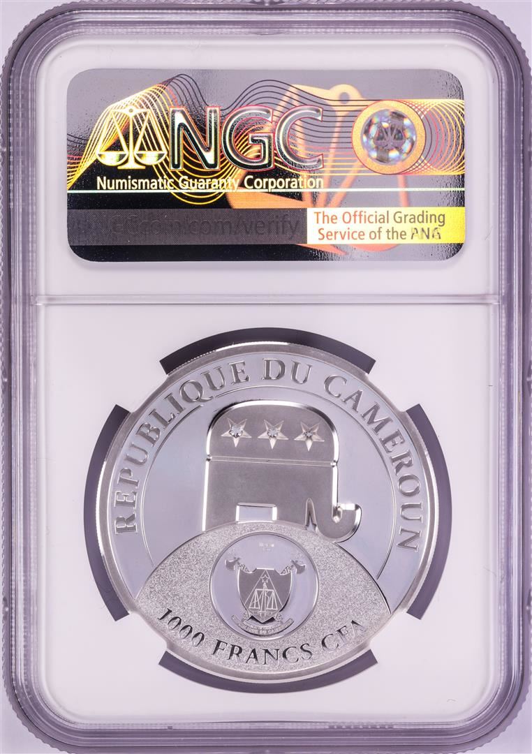 One 2020 Cameroon 1000 Francs High Relief Donald Trump Silver Coin NGC PF70 Ultra Cameo.