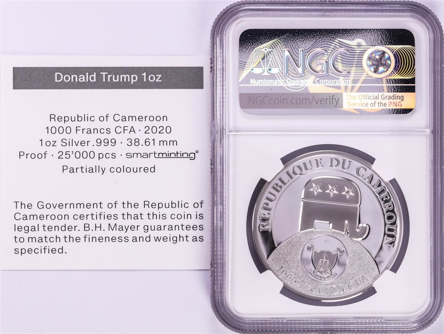 One 2020 Cameroon S1000F Donald Trump All Together High Relief PF 70 Ultra Cameo 1oz Silver .999 Coin.