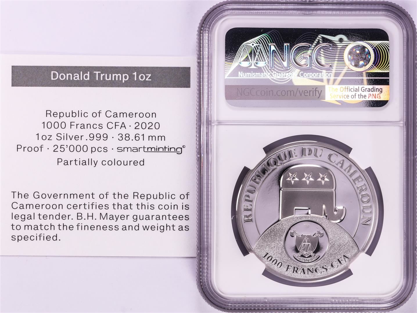 One 2020 Cameroon S1000F Donald Trump All Together High Relief PF 70 Ultra Cameo 1oz Silver .999 Coin.