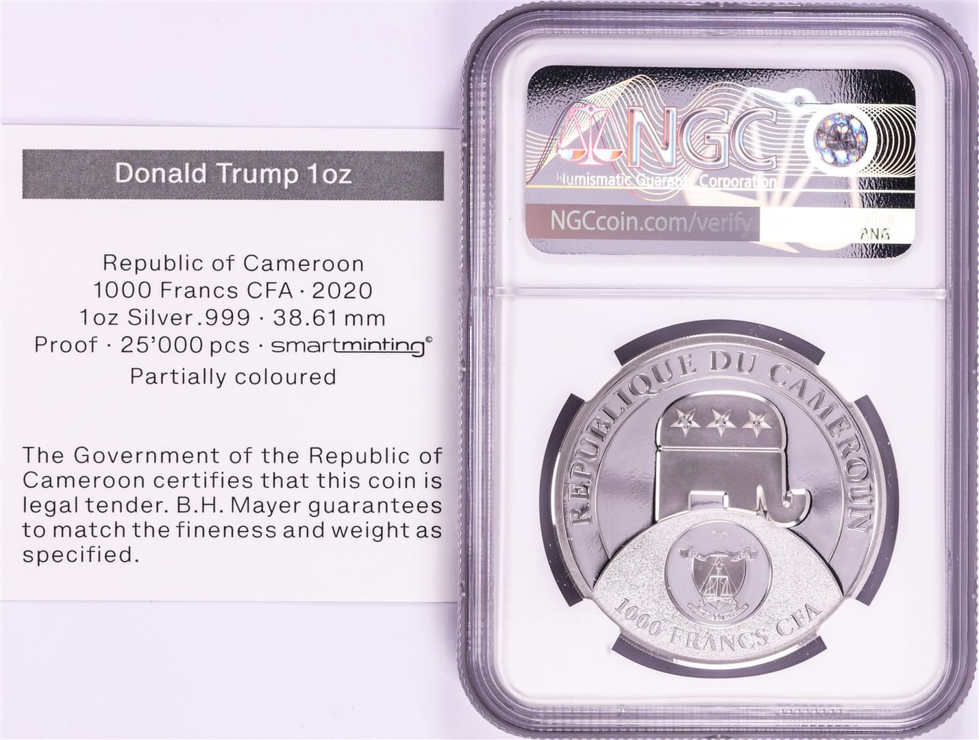 One 2020 Cameroon S1000F Donald Trump All Together High Relief PF 70 Ultra Cameo 1oz Silver .999 Coin.