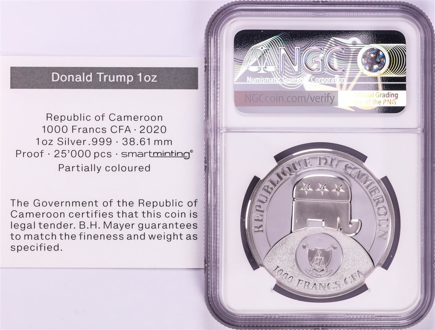 One 2020 Cameroon S1000F Donald Trump All Together High Relief PF 70 Ultra Cameo 1oz Silver .999 Coin.