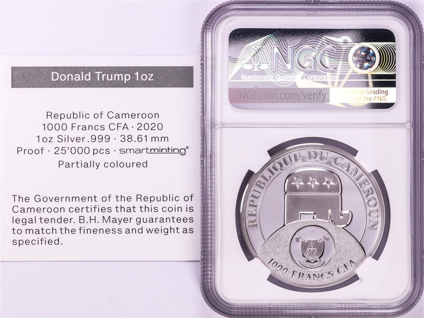 One 2020 Cameroon S1000F Donald Trump All Together High Relief PF 70 Ultra Cameo 1oz Silver .999 Coin.