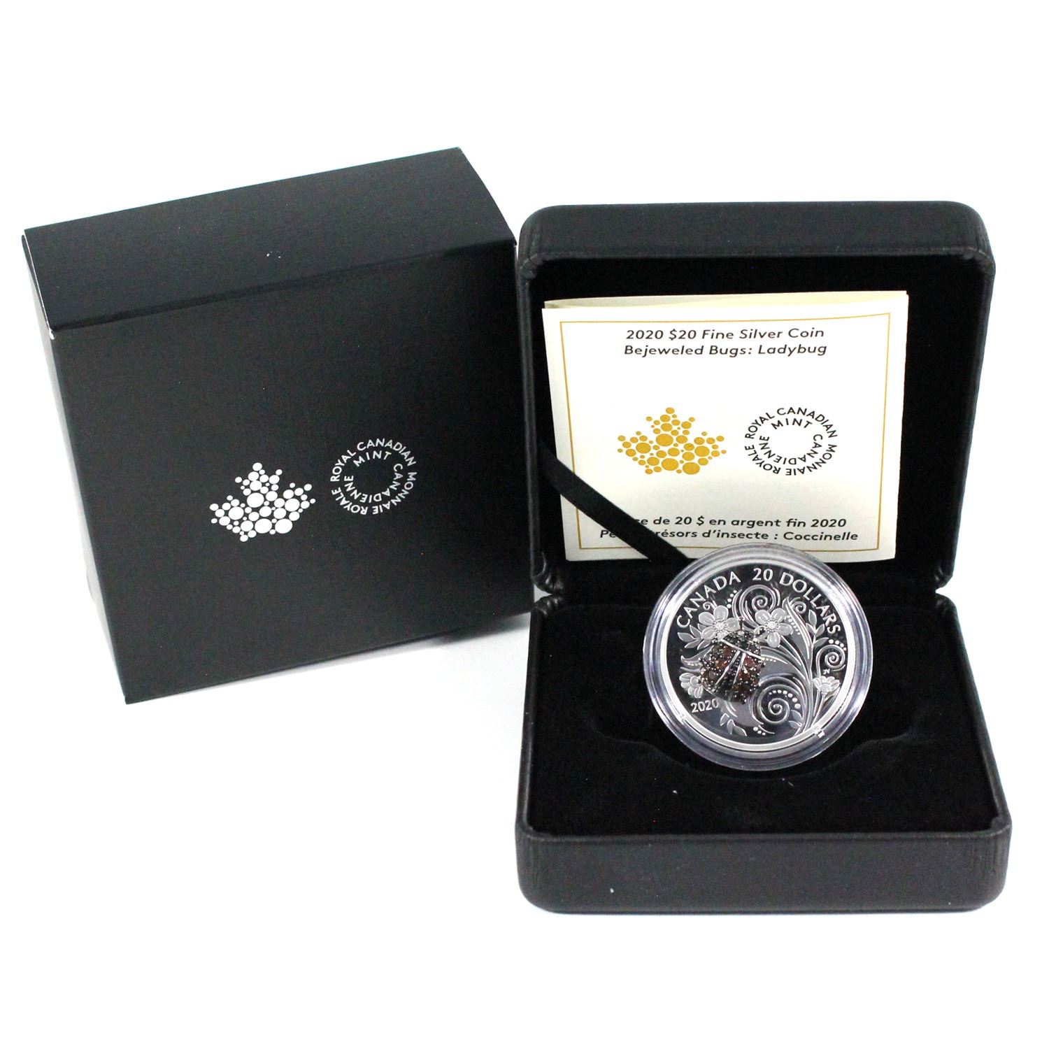 2020 Canada $20 Bejeweled Bugs - Ladybug Fine Silver Coin with Gemstone Enhancement. This coin series has been very popular with all coins previously sold out and this coin sold out immediately!!! (Sleeve is dented)