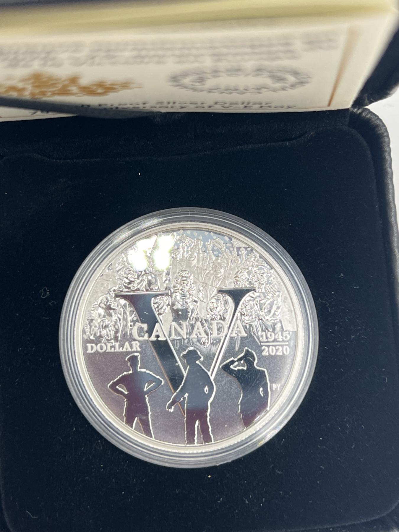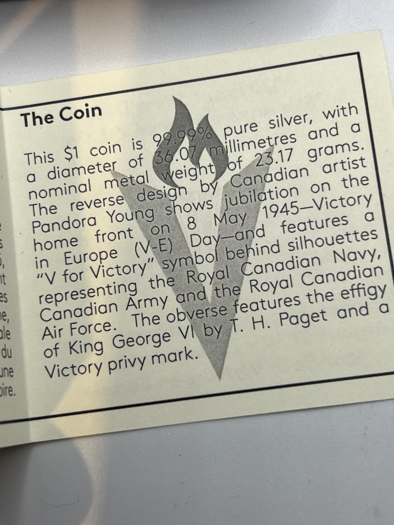 2020 Canada Proof Silver Dollar - 75th Anniversary of V-E Day RCM with full Book of Modern 50c