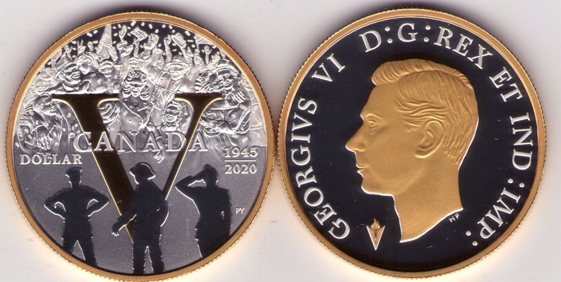 2020 Canada VE Day, Gold Plate/Fine Silver dollar, Tax Exempt