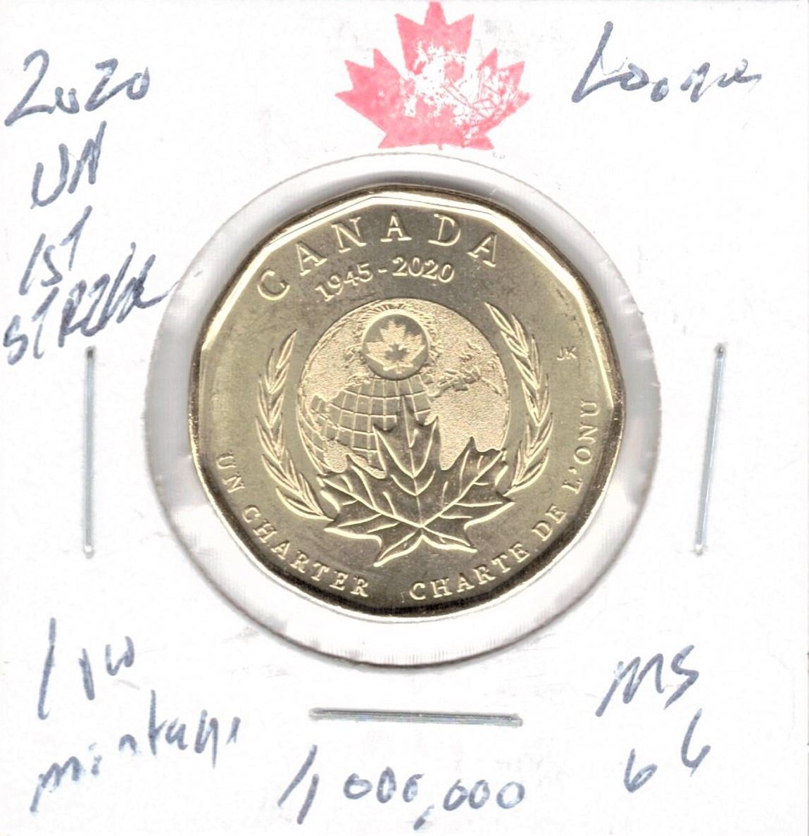 2020 Canadian One Dollar Coin - Uncoloured UN.