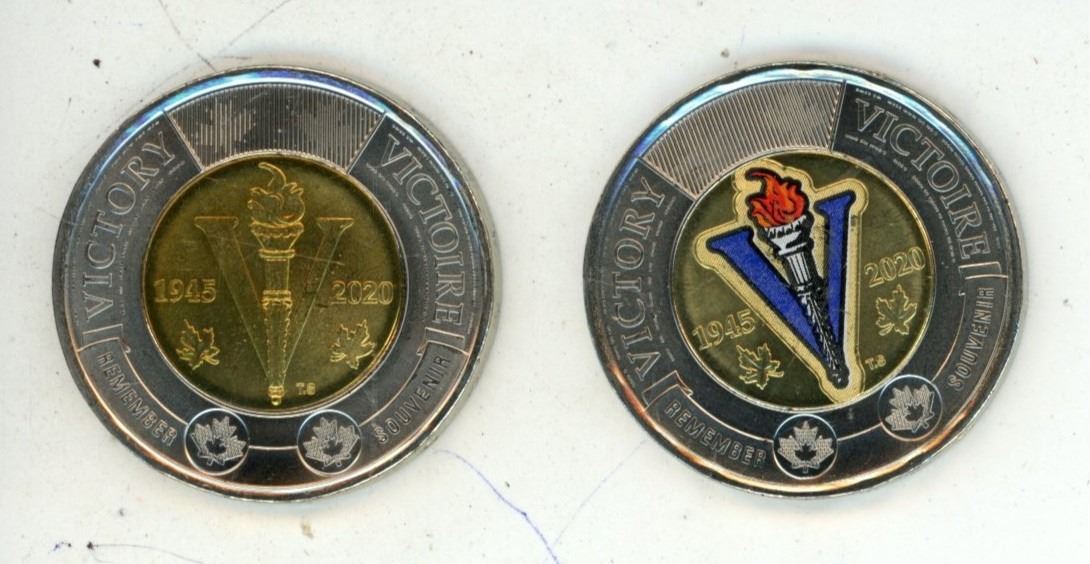 2020 Canadian One Dollar commemorating the 75th anniversary of the United Nations (UN) and its Charter (1) Colored and (1) Uncolored.