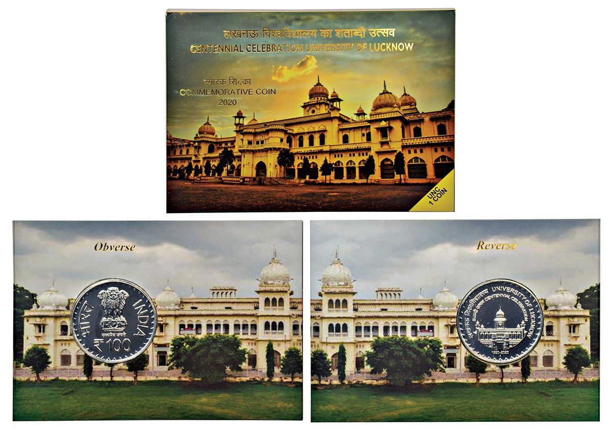2020, Centennial Celebration University of Lucknow, single UNC coin, 100 rupees, Mumbai mint, in original mint packing.