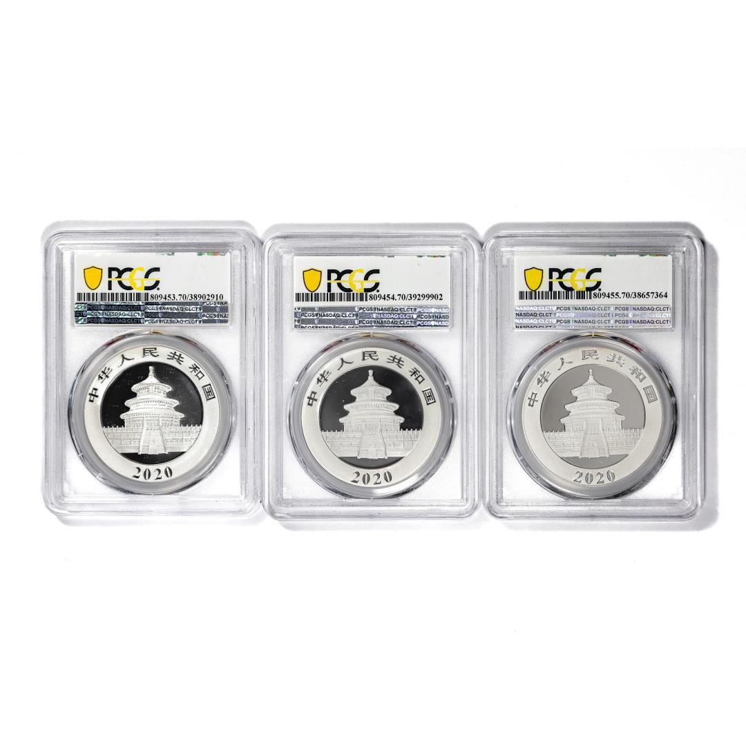 2020 China 10 Yuan Silver Panda (3) Coin Set PCGS MS70 Shenyang Mint w/COA