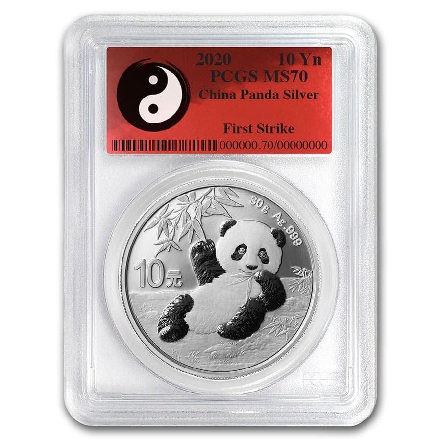 2020 China 30 gram Silver Panda MS-70 PCGS (FS, Yin-Yang)