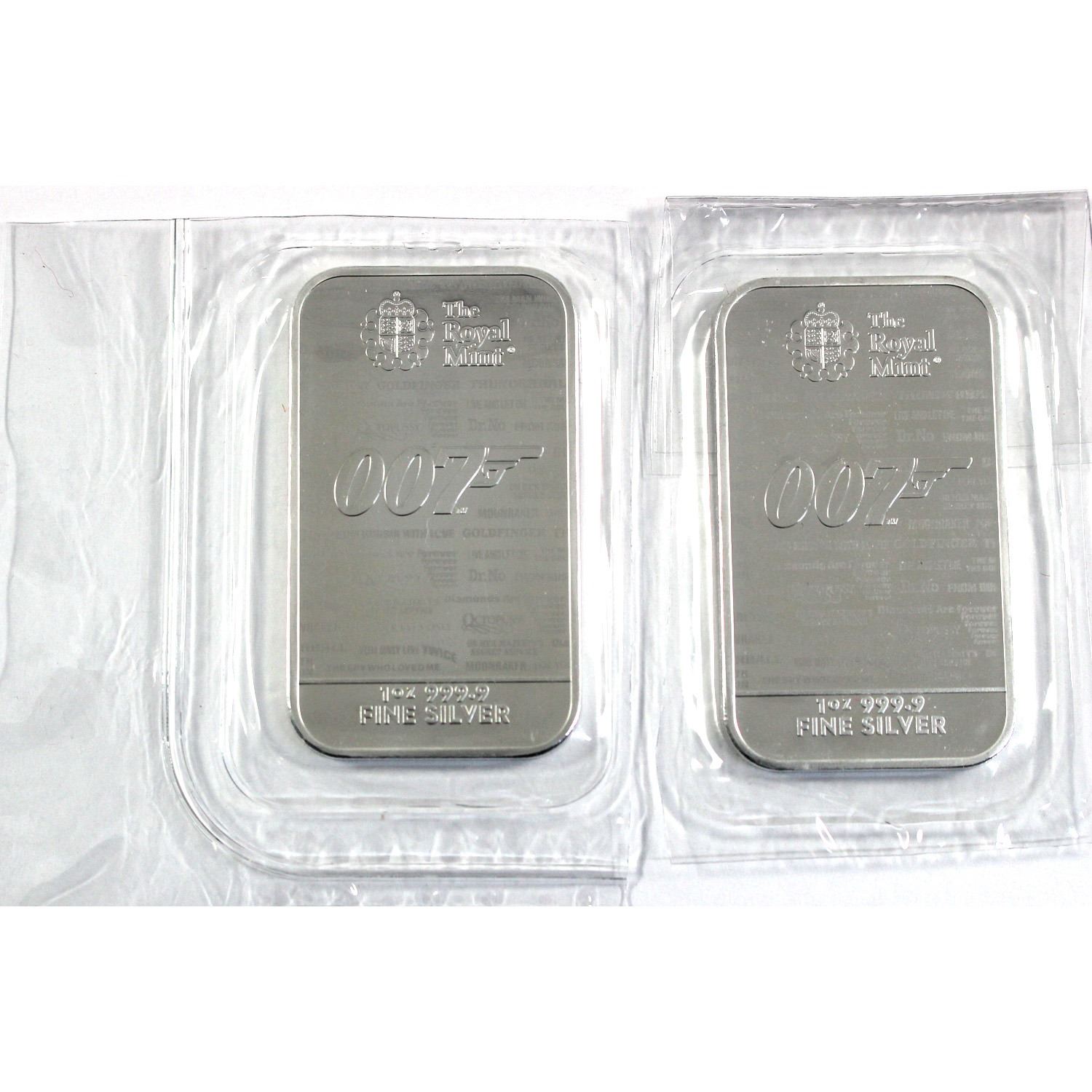 2020 Great Britain James Bond 007 - No Time to Die 1oz .9999 Fine Silver Bars in Sealed Mint Plastic. 2pcs (TAX Exempt)