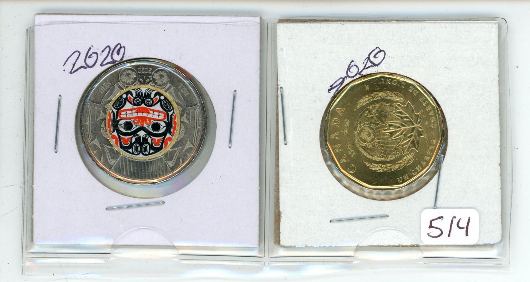 2020 "Haida" Toonie & "UN Charter" loonie coins