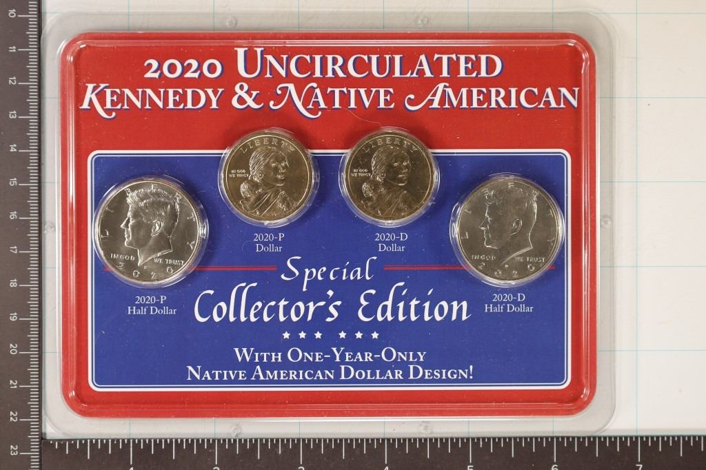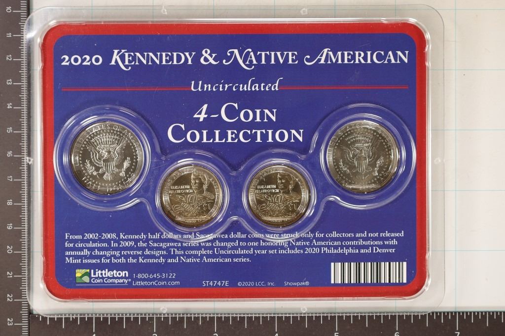 2020-P & D UNC KENNEDY HALF DOLLARS AND A 2020-P & D NATIVE AMERICAN HALF DOLLARS UNC. NATIVE WITH ONE YEAR ONLY DESIGN, IN LITTLETON COIN COMPANY PACKAGING