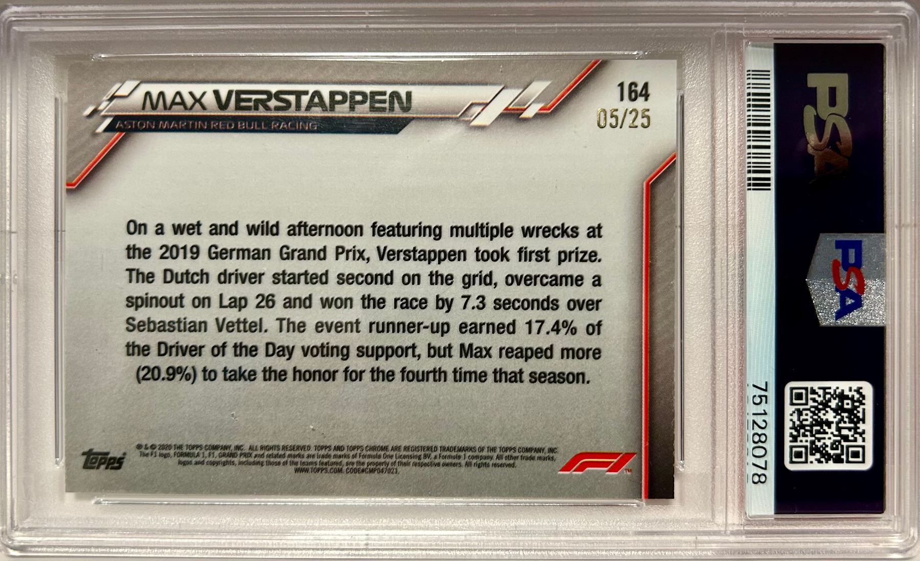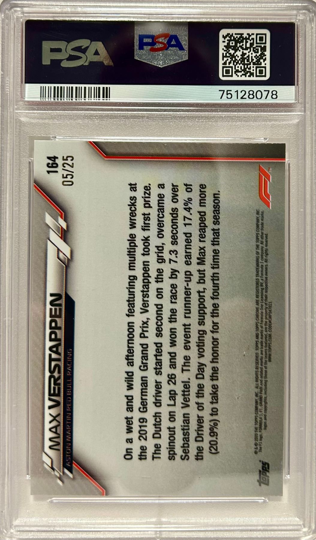 2020 Topps Chrome F1 Max Verstappen #164