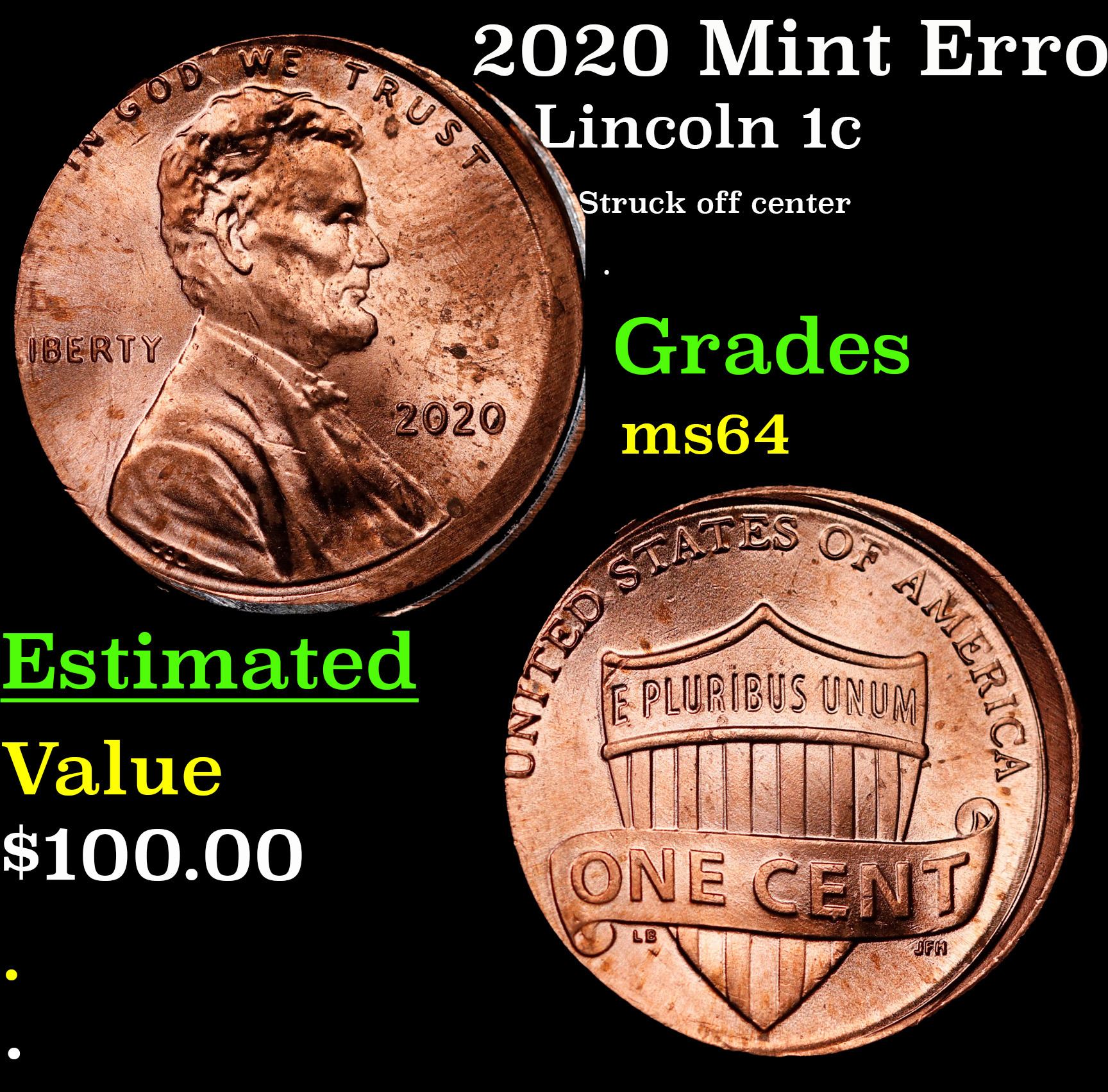 2020 Mint Error Lincoln Cent 1c Grades Choice Unc.