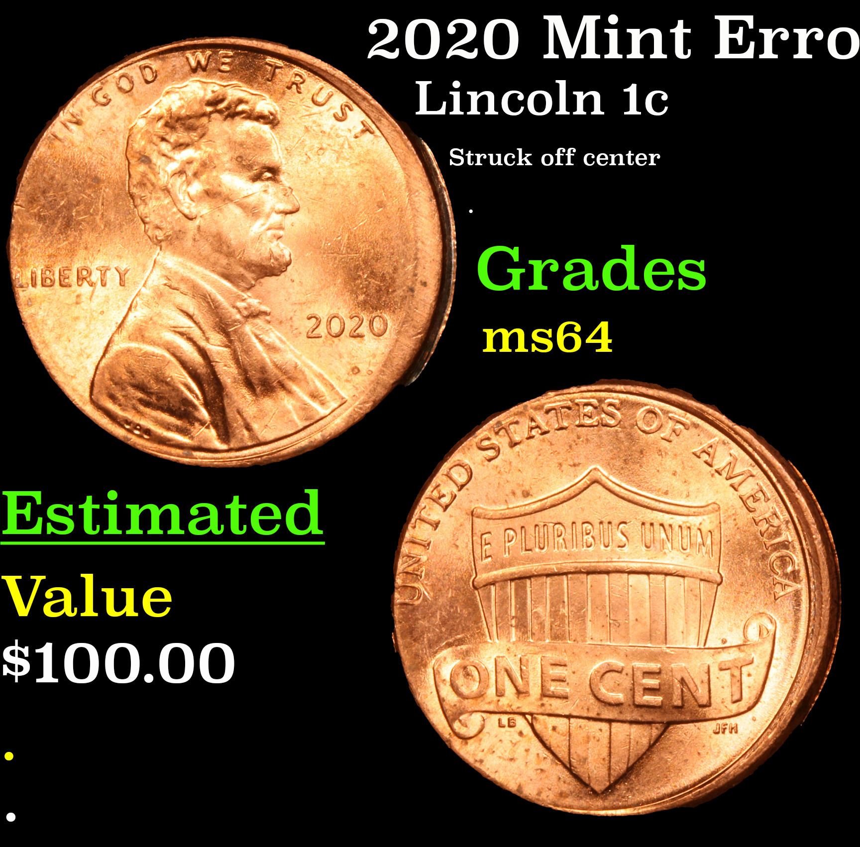 2020 Mint Error Lincoln Cent 1c Grades Choice Unc.