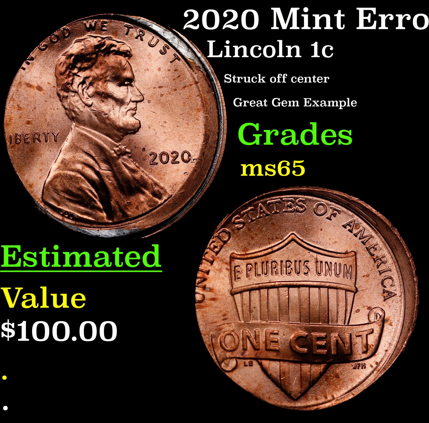 2020 Mint Error Lincoln Cent 1c Grades GEM Unc.